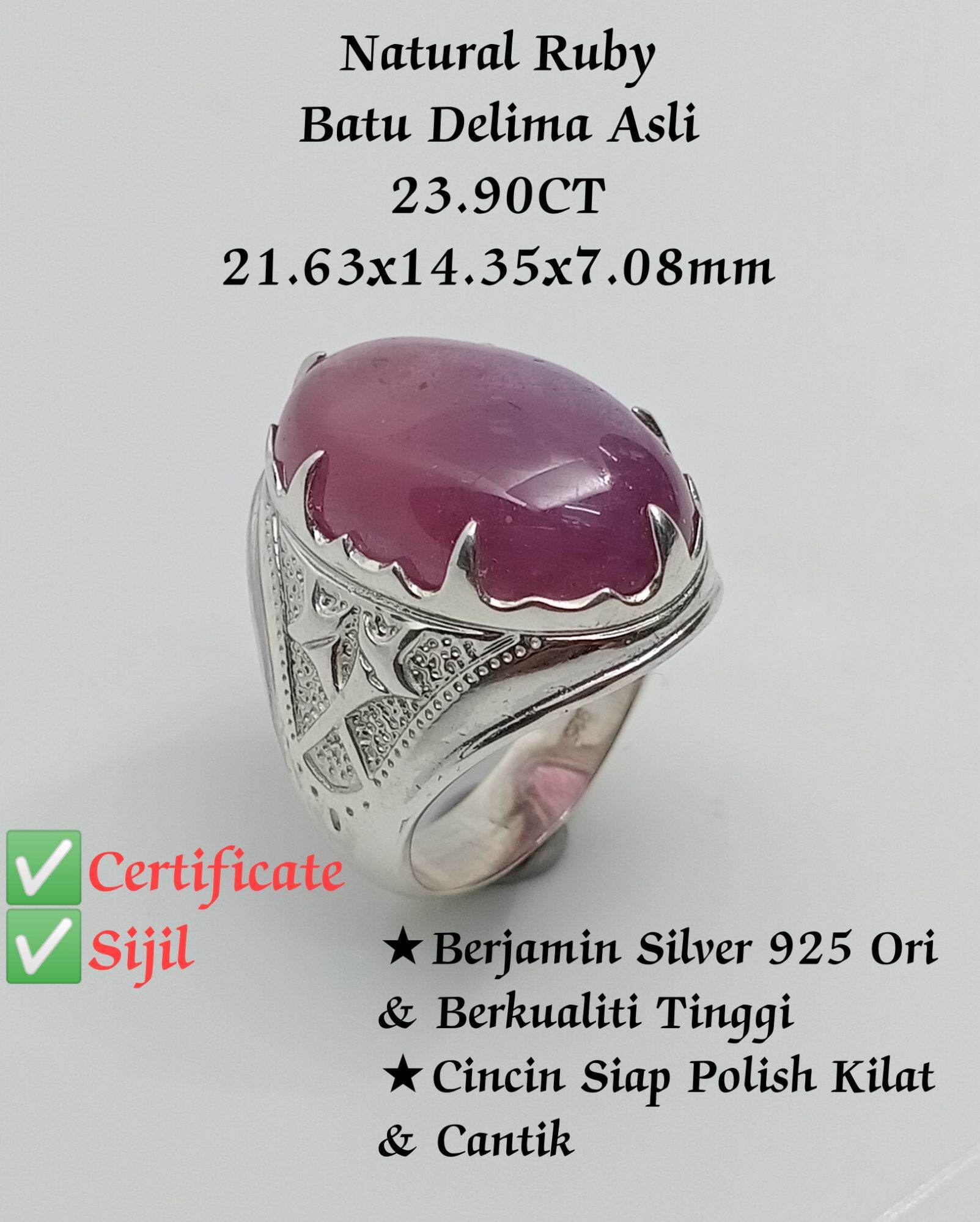 Gra Certificate Sijil Natural Ruby Cincin Batu Delima Asli Silver 925 23 90ct 21 63 X 14 35 X 7 08mm Lazada